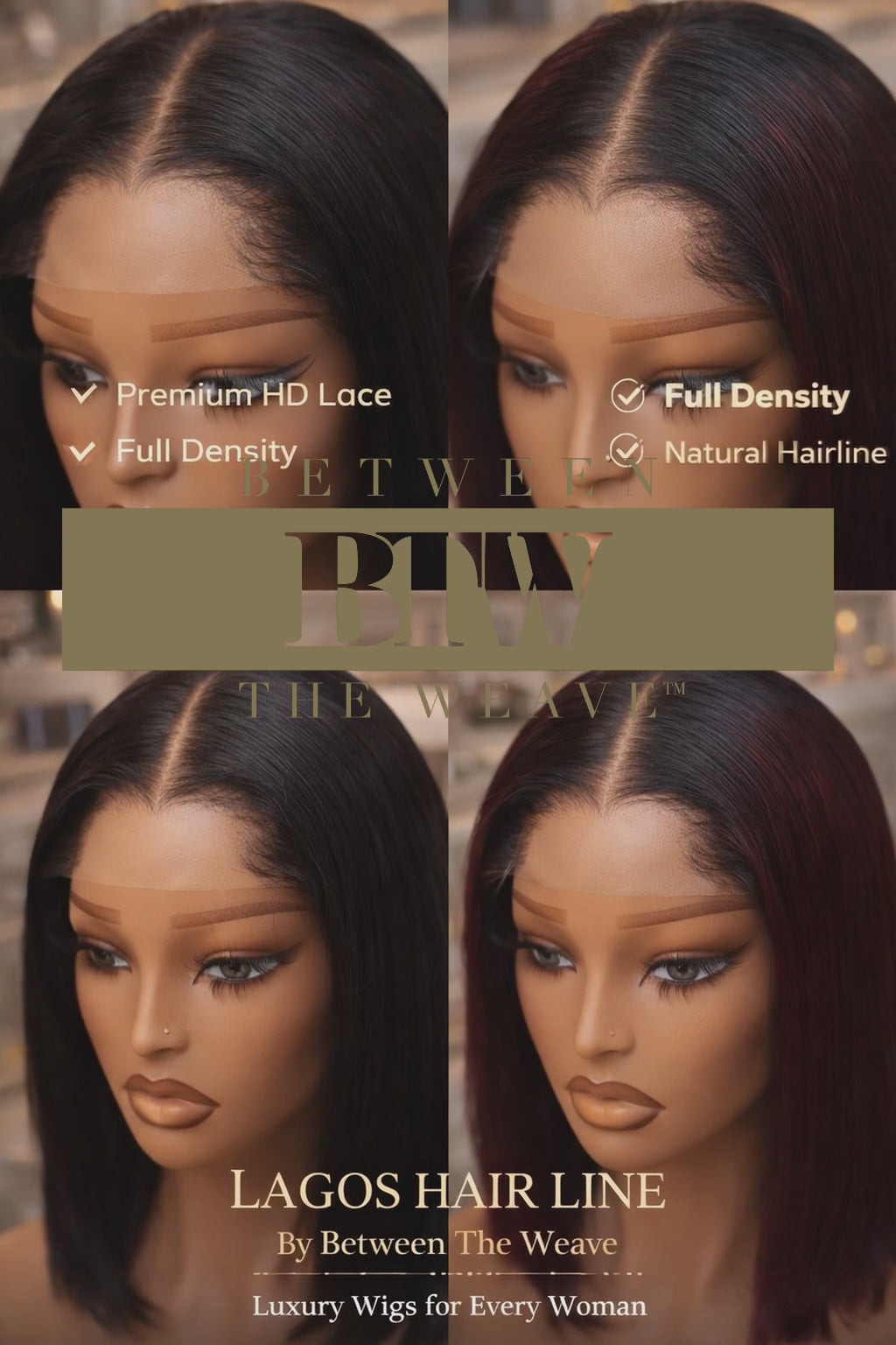 Experience refined beauty with the Lagos Hair Line Bob Wig. Expertly crafted with Premium HD Lace, full density, and a perfectly natural hairline, this wig delivers a seamless, elegant finish made for confident women who demand quality.